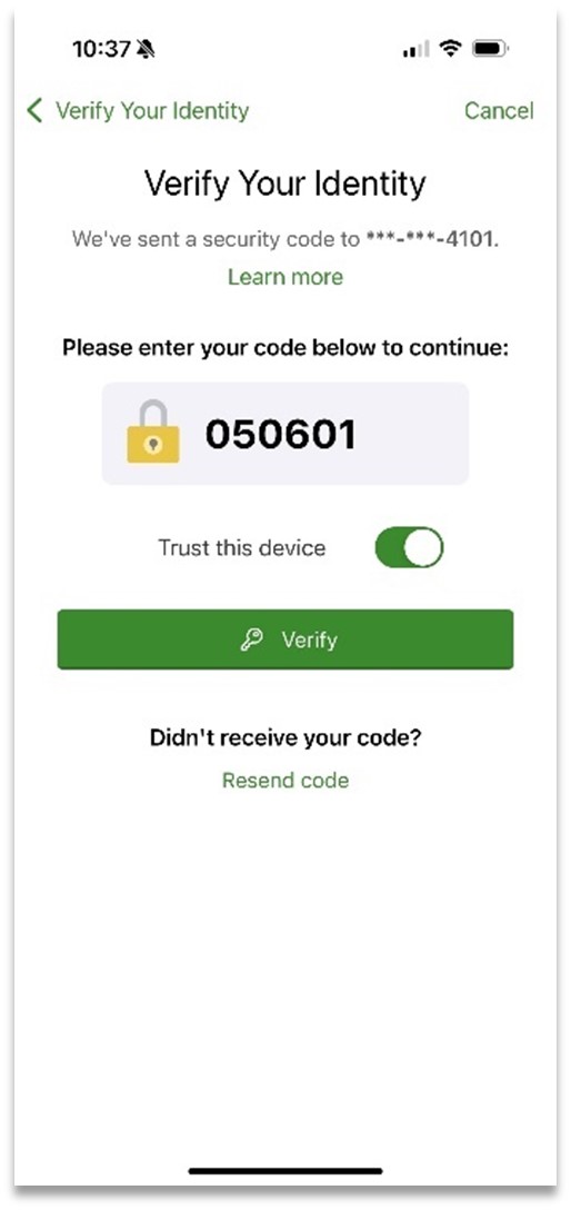 Keep the MyChart app open while waiting for the verification code. If the app is accidentally closed, you may need to select “Resend Code” to receive a new activation code.